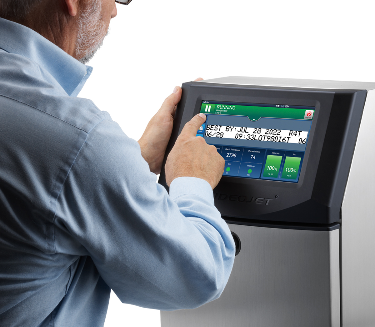 Videojet SIMPLICiTY™ user interface reduces operator printer interactions, helping to eliminate potential user errors through an intuitive 10-inch touchscreen display